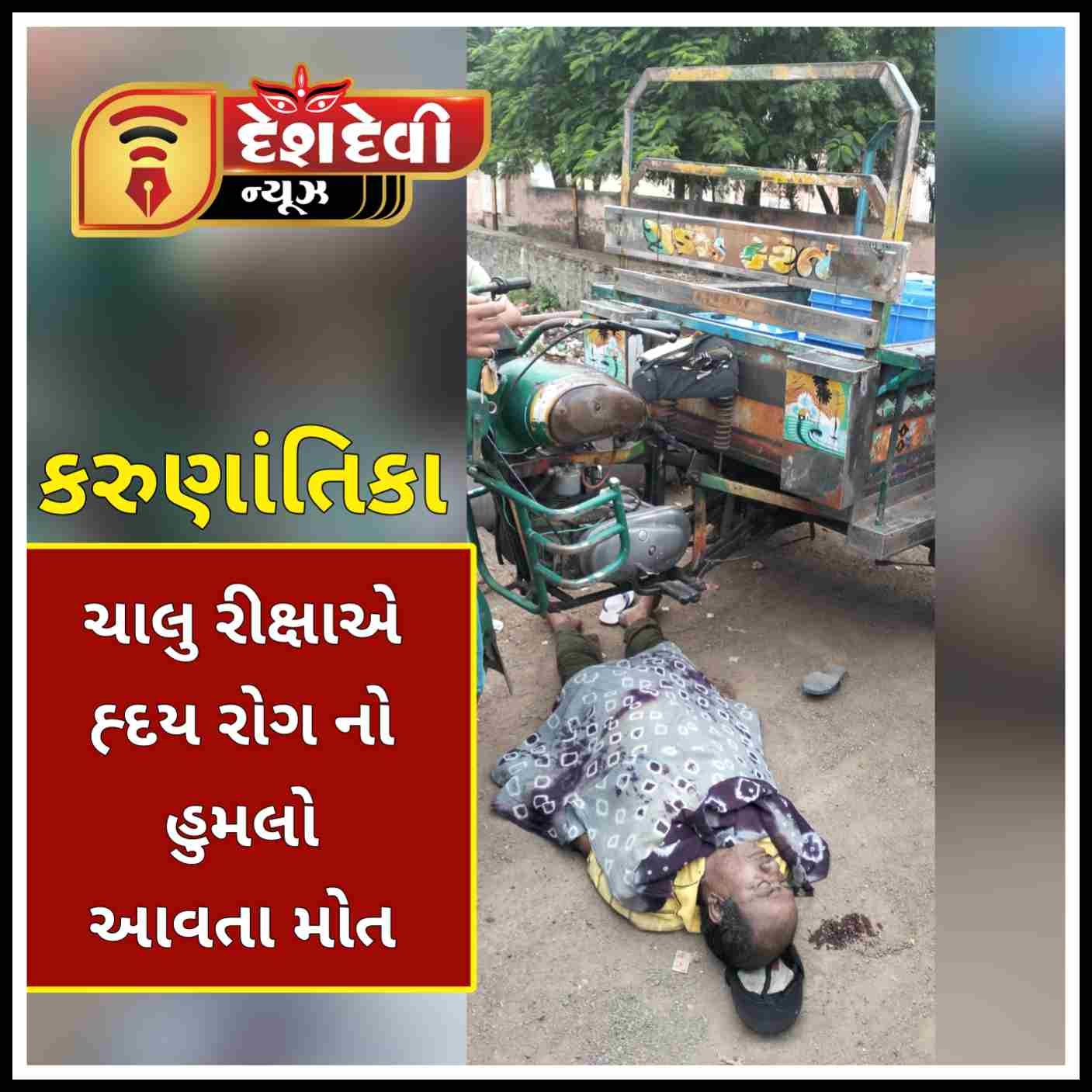 જામનગરના ધરાર નગર વિસ્તારમાં એક રિક્ષા ચાલકને દૂધ આપવા જતી વેળાએ ચાલુ રિક્ષાએ હૃદય રોગનો હુમલો આવી જતાં કરુણ મૃત્યુ