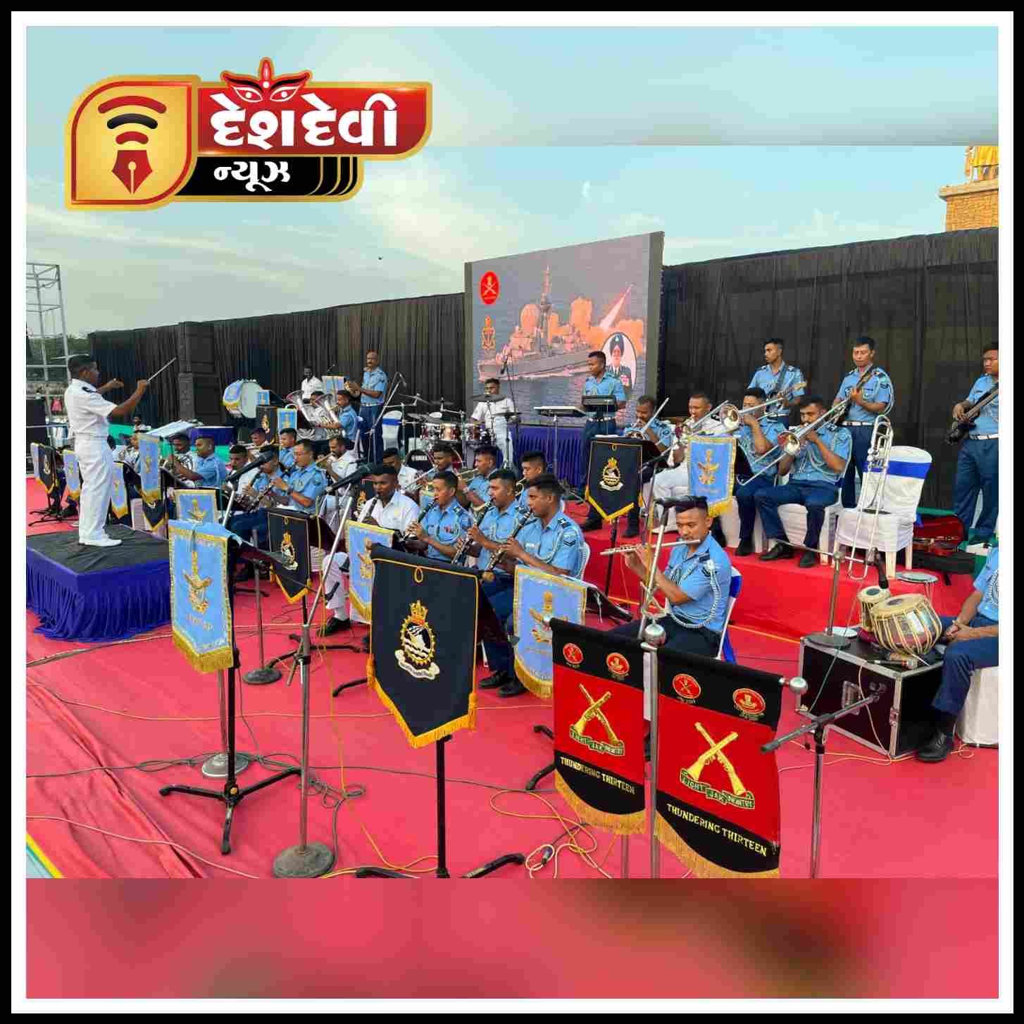 દેશ દેવી ન્યૂઝ જામનગર તા ૧૬ એપ્રિલ ૨૪ ભારતીય વાયુસેનાના માર્શલ અર્જુનસિંઘ ડીએફસીને તેમની ૧૦૫ મી જન્મ જયંતિ નિમિત્તે ૧૫ એપ્રિલ ૨૦૩૪ ના સાંજે ૪.૩૦ કલાકે લાખોટા રણમલ તળાવ (સિવિલ એરિયા) જામનગર ખાતે એરફોર્સ સ્ટેશન જામનગર દ્વારા ત્રિ-સેવા બેન્ડ પરફોર્મન્સનું આયોજન કરવામાં આવ્યું હતું. સંયુક્ત બેન્ડમાં એર વોરિયર સિમ્ફની ઓર્કેસ્ટ્રાના ૨૮ એર વોરિયર્સ, એર ફોર્સ બેન્ડના ૧૩ એર વોરિયર્સ, હેડક્વાર્ટર સાઉથ વેસ્ટર્ન એર કમાન્ડ, નેવી બેન્ડ, આઈએનેસ વાલસુરાના ૧૫ સંગીતકારોનો સમાવેશ થાય છે. ભારતીય વાયુસેનાના માર્શલને શ્રદ્ધાંજલિ આપવા માટે આ એક અનોખું અને તેના પ્રકારનું પ્રથમ ત્રિ-સેવા બેન્ડ પ્રદર્શન હતું.