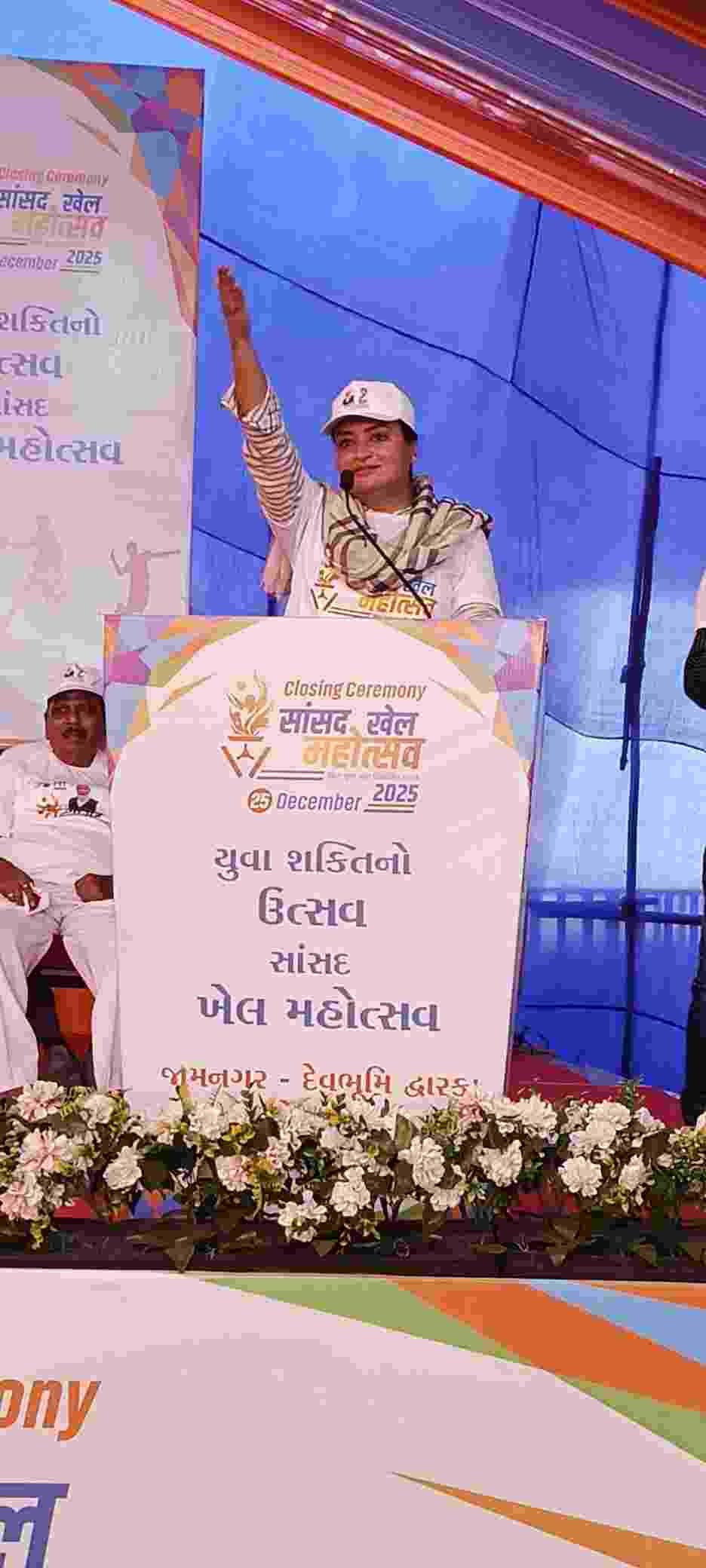 સાંસદ પુનમબેન માડમ એ જણાવ્યું હતું કે આજે સાંસદ ખેલ મહોત્સવ નો સમાપન સમારોહ સાથે પૂર્વ પ્રધાનમંત્રી અટલ બીહારી બાજપાઈ નો જન્મદિવસ એટલે સુસાસન દિવસ છે. આ ખેલ મહોત્સવમાં ગામડા થી લઈને તાલુકા અને જિલ્લા કક્ષા સુધી ની રમતો માં અઢળક લોકો જોડાયા હતા. અને વડાપ્રધાને પણ વર્ચ્યુલી ઉપસ્થિત રહી ને પ્રેરક બળ પૂરું પાડ્યું હતું.