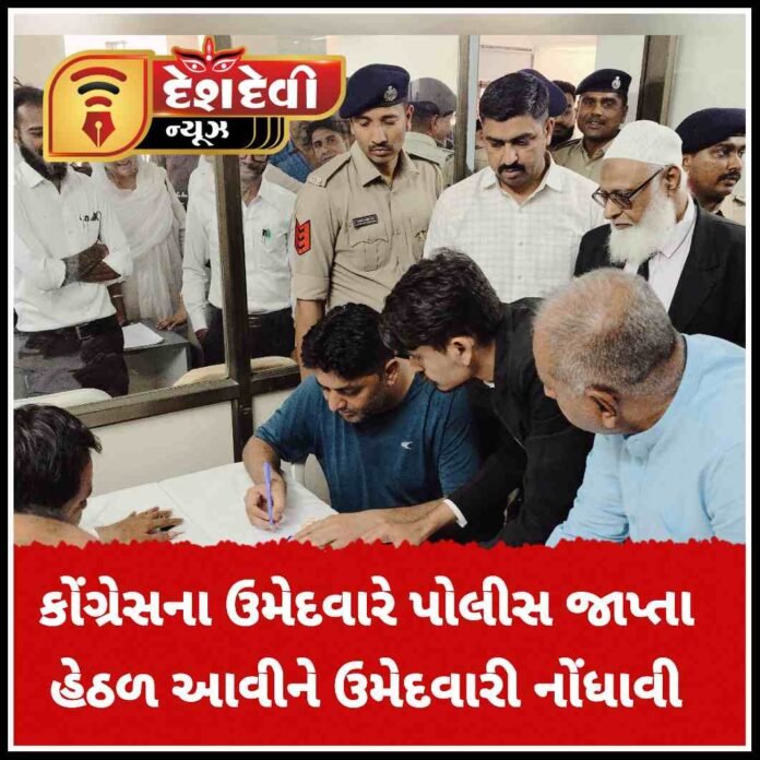 જામનગર મહાનગર પાલિકાની ચૂંટણી માટે કોંગ્રેસના ઉમેદવારે જેલમાંથી પોલીસ જાપ્તા હેઠળ આવીને ઉમેદવારી નોંધાવી