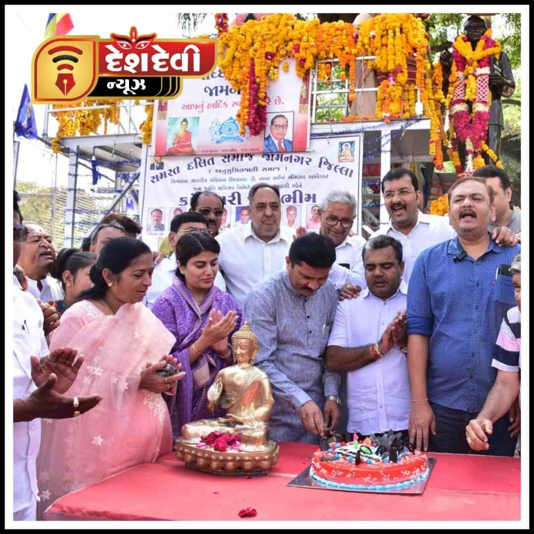 દેશ દેવી ન્યૂઝ જામનગર તા ૧૫ એપ્રિલ ૨૪ જામનગરમાં આજે ડો. બાબા સાહેબ આંબેડકરને જન્મ જયંતીની ધામધૂમપૂર્વક ઉજવણી કરવામાં આવી હતી. ડો. બાબા સાહેબ આંબેડકર ની પ્રતિમા ને શહેરના મહાનુભાવના હસ્તે ફૂલહાર કરાયા હતા, ઉપરાંત કેક નું કટીંગ કરાયું હતું.