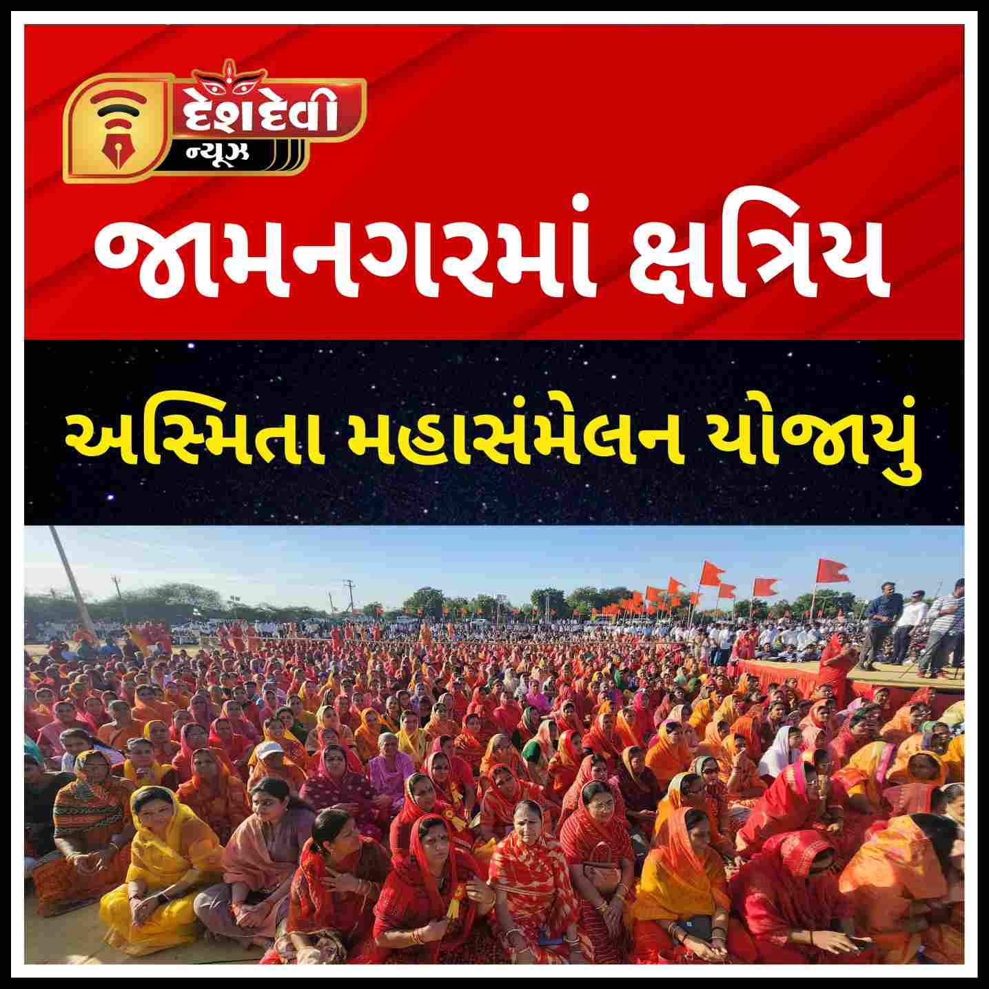 જામનગરની ભાગોળે યોજાયેલા ક્ષત્રિય અસ્મિતા મહા સંમેલનમાં ભાજપ વિરોધી મતદાન નો સંકલ્પ કરાયો