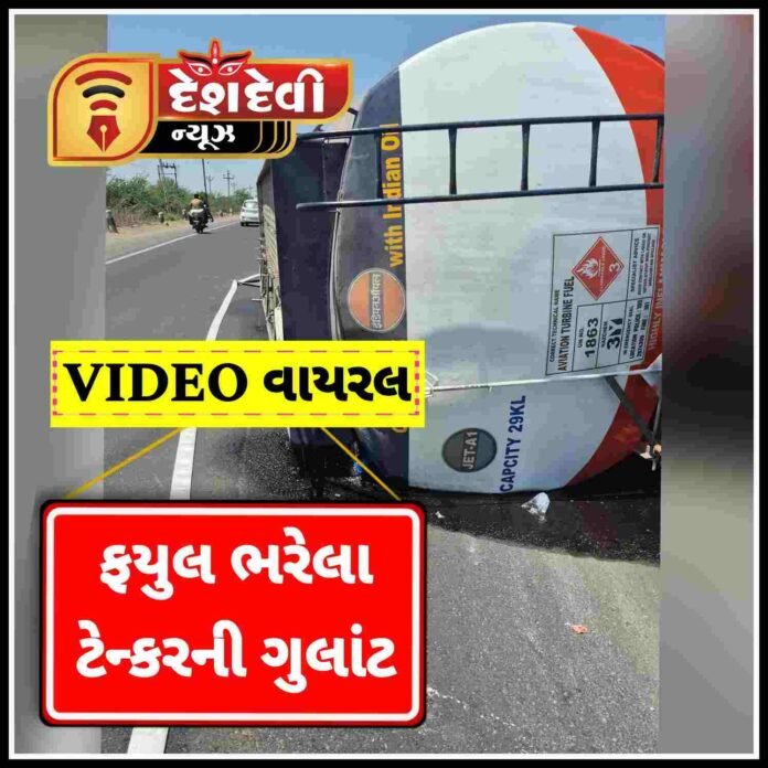 જામનગર: લાલપુર બાયપાસ પાસે ફ્યુલ ભરેલું ટેન્કર પલટ્યું, ફ્યુલ લીક થતાં અફરાતફરી, ફાયર-પોલીસે વિસ્તાર સીલ કર્યો