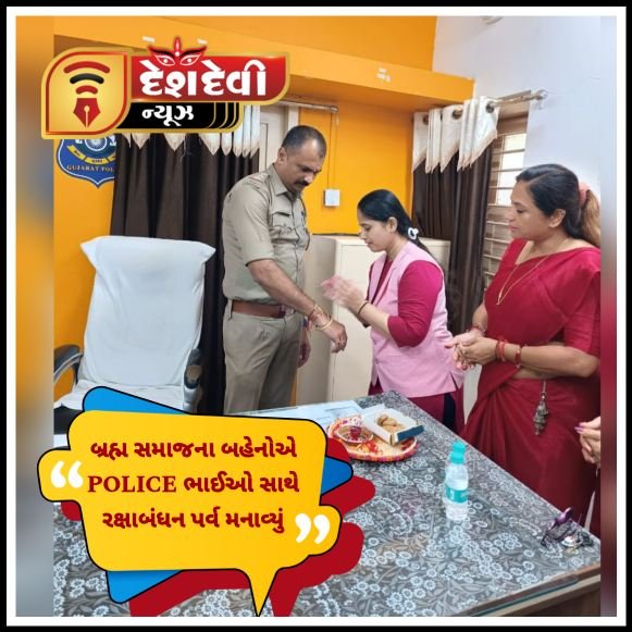 જામનગરમાં બ્રહ્મ સમાજના બહેનોએ બેડી મરિન પોલીસ સ્ટેશનના PI તથા અન્ય પોલીસ સ્ટાફ સાથે રક્ષાબંધનનું પૂર્વ મનાવ્યું