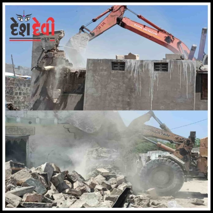દેશ દેવી ન્યુઝ તા.૧૧ માર્ચ ૨૩ ખંભાળિયા: દ્વારકા જિલ્લાના કલ્યાણપુર તાલુકાના ઐતિહાસિક ધર્મ સ્થળ હર્ષદ (ગાંધવી) ખાતે આજથી શરૂ કરવામાં આવી છે. દેવભૂમિ દ્વારકા જિલ્લા પોલીસ અધિક્ષક નિતેશ પાંડેયના વડપણ હેઠળ સ્થાનિક રેવન્યુ સ્ટાફ દ્વારા વિવિધ પ્રકારના દબાણો પર ડિમોલિશન કાર્ય કરવાની કામગીરીનું સુવ્યવસ્થિત આયોજન કરવામાં આવ્યું હતું. થોડા સમય પૂર્વે આ વિસ્તારના દબાણકારોને 18 જાન્યુઆરીના રોજ લેખિત નોટિસ ઇસ્યુ થયા બાદ અનેક દબાણો યથાવત રહેતા આખરે આજે સવારથી જુદા-જુદા પ્રકારના દબાણો પર સરકારી મશીનો વડે દબાણ હટાવ ઝુંબેશ શરૂ કરવામાં આવી છે.આજે સવારથી હર્ષદ ગાંધવી વિસ્તારમાં દેવભૂમિ દ્વારકા જિલ્લા ઉપરાંત અન્ય જિલ્લામાંથી પોલીસ તથા એસઆરપી સહિતનો સુરક્ષા કાફલો ગત રાત્રિથી જ ગોઠવી દેવામાં આવ્યો હતો જેમાં જિલ્લા પોલીસ વડા નિતેશ પાંડેય, ડીવાયએસપી સમીર સારડા, હાર્દિક પ્રજાપતિ, એમ.એન. પરમાર, સહીત પી.આઈ., પી.એસ.આઈ. સહિત આશરે 1200 જેટલા મહિલા કર્મીઓ, પોલીસ જવાનોની ચુસ્ત સુરક્ષા વ્યવસ્થા વચ્ચે હર્ષદ (ગાંધવી) સ્થિત હર્ષદ માતાજી મંદિરથી થોડે દૂર કરવામાં આવેલા વિવિધ દબાણો પર જેસીબી જેવા મશીન વડે દબાણ હટાવ કામગીરી શરૂ કરવામાં આવી હતી.
