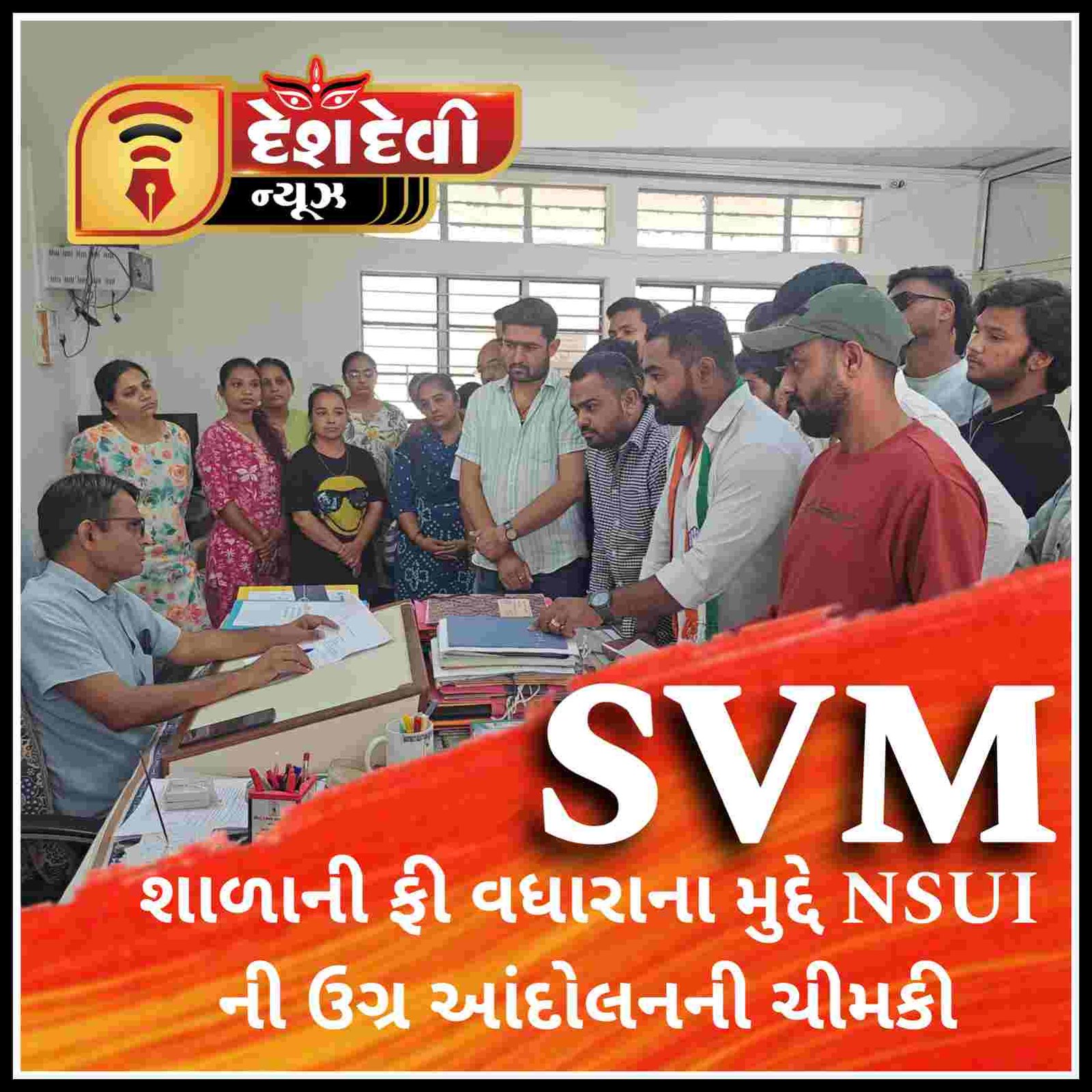 દેશ દેવી ન્યુઝ જામનગર તા ૩,એપ્રિલ ૨૬ જામનગર શહેરની એસવીએમ શાળાના સંચાલકો સામે વાલીઓમાં વધતા રોષને પગલે નેશનલ સ્ટુડન્ટ યુનિયન ઓફ ઈન્ડિયા (એનએસયુઆઈ) દ્વારા ગંભીર રજૂઆત કરવામાં આવી છે. શાળા દ્વારા કરવામાં આવેલ ફી વધારો, અપારદર્શક વસૂલાત તથા અન્ય ગેરરીતિઓ મુદ્દે એનએસયુઆઈએ જિલ્લા શિક્ષણાધિકારીને લેખિત અરજી પાઠવી છે. એનએસયુઆઈના જણાવ્યા મુજબ, શાળા દ્વારા નર્સરીથી ધોરણ ૧૦ સુધી સરેરાશ ૩૫ થી ૪૫ ટકા જેટલો ફી વધારો કરવામાં આવ્યો છે, જે વાલીઓ માટે ભારે આર્થિક બોજરૂપ બન્યો છે. આ વધારાના યોગ્ય કારણો તથા પારદર્શિતા આપવામાં આવી નથી, જેના કારણે વાલીઓમાં ભારે અસંતોષ ફેલાયો છે.આ ઉપરાંત, શાળા દ્વારા ફી અલગ અલગ શીર્ષક હેઠળ વસૂલવામાં આવતી હોવાના આક્ષેપો છે, જેમાં કાયદેસર ફી સિવાય “દાન” તરીકે પણ રકમ લેવામાં આવતી હોવાની શંકા છે. આ મામલે નાણાકીય પારદર્શિતા અંગે ગંભીર પ્રશ્નો ઉભા થયા છે.કેમ્બ્રિજ પાઠ્યક્રમ અંગે પણ શાળા પર ભ્રામક માહિતી આપવાનો આક્ષેપ કરવામાં આવ્યો છે. શાળા સંપૂર્ણ કેમ્બ્રિજ પદ્ધતિનો દાવો કરે છે, પરંતુ વાસ્તવમાં માત્ર એક જ પુસ્તક કેમ્બ્રિજનું છે, અને બાકીના પુસ્તકો સ્થાનિક પ્રકાશકોના હોવાનું જણાવવામાં આવ્યું છે.તે ઉપરાંત, શાળા દ્વારા દિવસીય શાળા પદ્ધતિ ફરજિયાત બનાવવામાં આવી હોવાના મુદ્દે પણ વાલીઓમાં અસંતોષ છે, કારણ કે આ નિર્ણય માટે તેમની સંમતિ લેવામાં આવી નથી. કેમ્બ્રિજ કેન્દ્ર માટે અનુભવી અને લાયકાતપ્રાપ્ત શિક્ષક સ્ટાફની અછત હોવાનો મુદ્દો પણ ઉઠાવવામાં આવ્યો છે.એનએસયુઆઈએ વધુમાં આક્ષેપ કર્યો છે કે શાળા સંચાલક ડૉ. હેમાંગ પારેખ દ્વારા વાલીઓને છોડપત્ર (એલ.સી.) લઇ જવા માટે દબાણ કરવામાં આવી રહ્યું છે, જે ગંભીર અને અન્યાયપૂર્ણ બાબત છે.આ તમામ મુદ્દાઓને ધ્યાનમાં રાખીને એનએસયુઆઈ દ્વારા જિલ્લા શિક્ષણાધિકારીને લેખિત અરજી પાઠવી યોગ્ય તપાસ કરીને કાનૂની કાર્યવાહી કરવાની માંગણી કરવામાં આવી છે. સાથે જ ચેતવણી આપવામાં આવી છે કે જો એક સપ્તાહની અંદર યોગ્ય કાર્યવાહી કરવામાં નહીં આવે તો એનએસયુઆઈ દ્વારા ઉગ્ર આંદોલન કરવામાં આવશે.