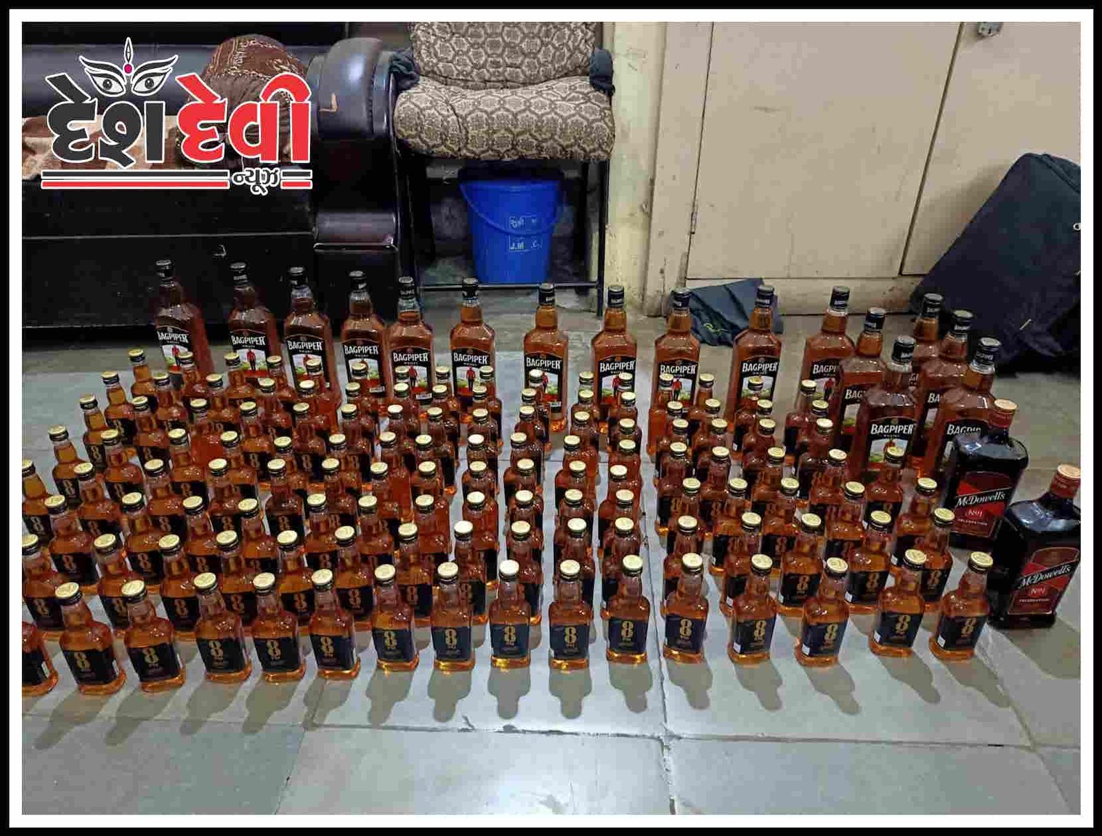 દેશ દેવી ન્યુઝ જામનગર: તા.૧૪ ડીસેમ્બર ૨૨ શહેરના મોહનનગર આવાસ રોડ ઉપર એક ઇસમ એક બે થેલા સાથે શંકાસ્પદ હાલતમાં ઉભેલ છે. તેવી હકિકતનાં આધારે રેઇડ કરતા વિશાલભાઇ ગુણંવતરાય ગોપીયાણી બ્રાહ્મણ ઉ.૩૭, ધંધો ડ્રાઇવીંગ રહે. અંધાશ્રમ આવાસ પ્રથમ માળે બ્લોક નંબર ૧૦૬ વાળા પાસેથી વિદેશી દારૂના ચપટા નંગ ૧૨૦ કિ. રૂા.૧૩,૮૦૦ તથા વિદેશી દારૂની બોટલ નંગ ૧૭  કિ. રૂા. ૧૧,૯૦૦ મળી કુલ રૂા. ૨૫,૭૦૦ ના મુદામાલ સાથે રેઇડ દરમ્યાન પો. સબ. ઇ. બી. એસ. વાળાએ કાર્યવાહી કરેલ છે.