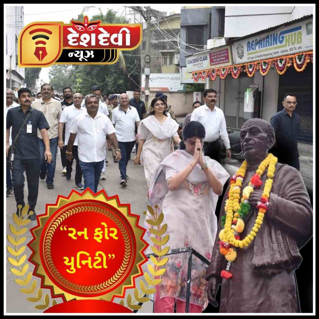 દેશ દેવી ન્યુઝ જામનગર તા.૩૧ ઓક્ટોબર ૨૫, દેશમાં દર વર્ષે તા.૩૧ ઓક્ટોબરના રોજ સરદાર વલ્લભભાઈ પટેલની જન્મજયંતિ નિમિત્તે રાષ્ટ્રીય એકતા દિવસની ઉજવણી કરવામાં આવે છે. જેના ભાગરૂપે આજ રોજ જામનગર મહાનગરપાલિકા તથા જિલ્લા વહીવટી તંત્રના સંયુક્ત ઉપક્રમે શહેરના રણમલ તળાવ ખાતે રન ફોર યુનિટી કાર્યક્રમનું આયોજન કરવામાં આવ્યું હતું.જેમાં રાજ્યકક્ષાના મંત્રી શ્રીમતી રીવાબા જાડેજા, મેયરશ્રી વિનોદભાઈ ખીમસુરીયા, ધારાસભ્યશ્રી દિવ્યેશભાઈ અકબરી, જિલ્લા કલેક્ટર કેતન ઠક્કર, મ્યુનિસિપલ કમિશ્નર ડી.એન.મોદી, જિલ્લા પોલીસ વડા ડો. રવિમોહન સૈની, અગ્રણી શ્રીમતી બીનાબેન કોઠારી, ડેપ્યુટી મેયર ક્રિષ્નાબેન સોઢા, સ્ટેન્ડિંગ કમિટીના ચેરમેન નિલેશભાઈ કગથરા, સાશક પક્ષના નેતા આશિષ જોશી, દંડક કેતન નાખવા સહિતના મહાનુભાવોએ ફ્લેગ ઓફ કરી રેલીનું પ્રસ્થાન કરાવ્યું હતું.રેલીમાં વિદ્યાર્થીઓ દ્વારા સ્વચ્છતા પ્રત્યે લોકોમાં જાગૃતતા આવે તે હેતુથી વિવિધ પ્રકારના પોસ્ટર અને બેનરો રાખવામાં આવ્યા હતા. તેમજ કાર્યક્રમને અનુરૂપ દેશભક્તિ ગીતો અને રાસ મંડળીઓ દ્વારા રાસ કરવામાં આવ્યા હતા.આ દોડ રણમલ તળાવ ગેઇટ નં.1 ના પાર્કિંગથી શ્યામજી કૃષ્ણવર્મા સ્ટેચ્યુથી મયુર મેડિકલ થઈ રણજીતનગર પટેલ સમાજ ખાતે પૂર્ણ થઈ હતી. જ્યાં મહાનુભાવો અને પદાધિકારીશ્રીઓ દ્વારા સરદાર વલ્લભભાઈ પટેલની પ્રતિમાને ફુલહાર કરવામાં આવ્યા હતા. બાદમાં સ્વચ્છતા હી સેવા કાર્યક્રમના ભાગરૂપે મહાનુભાવો અને પદાધિકારીશ્રીઓ તથા અધિકારીશ્રીઓ સફાઈ અભિયાનમાં સહભાગી થયા હતા.આ રેલીમાં નિવાસી અધિક કલેક્ટર બી.એન.ખેર, જિલ્લા ગ્રામ વિકાસ એજન્સીના નિયામક શારદા કાથડ, નાયબ મ્યુનિસિપલ કમિશનર દેવેન્દ્રસિંહ ઝાલા,, જામનગર ગ્રામ્ય પ્રાંત અધિકારી બ્રિજેશ કાલરિયા, જિલ્લા રમત ગમત અધિકારીશ્રી બી.જે.રાવલીયા, જામનગર જિલ્લા વહીવટી તંત્ર તથા જામનગર મ્યુનિસિપલ કોર્પોરેશનના અધિકારીઓ, એનસીસી, હોમગાર્ડ્સ યુનિટ, વિદ્યાર્થીઓ સહિત વિશાળ સંખ્યામાં નગરજનો ઉત્સાહભેર સહભાગી થયા હતા.