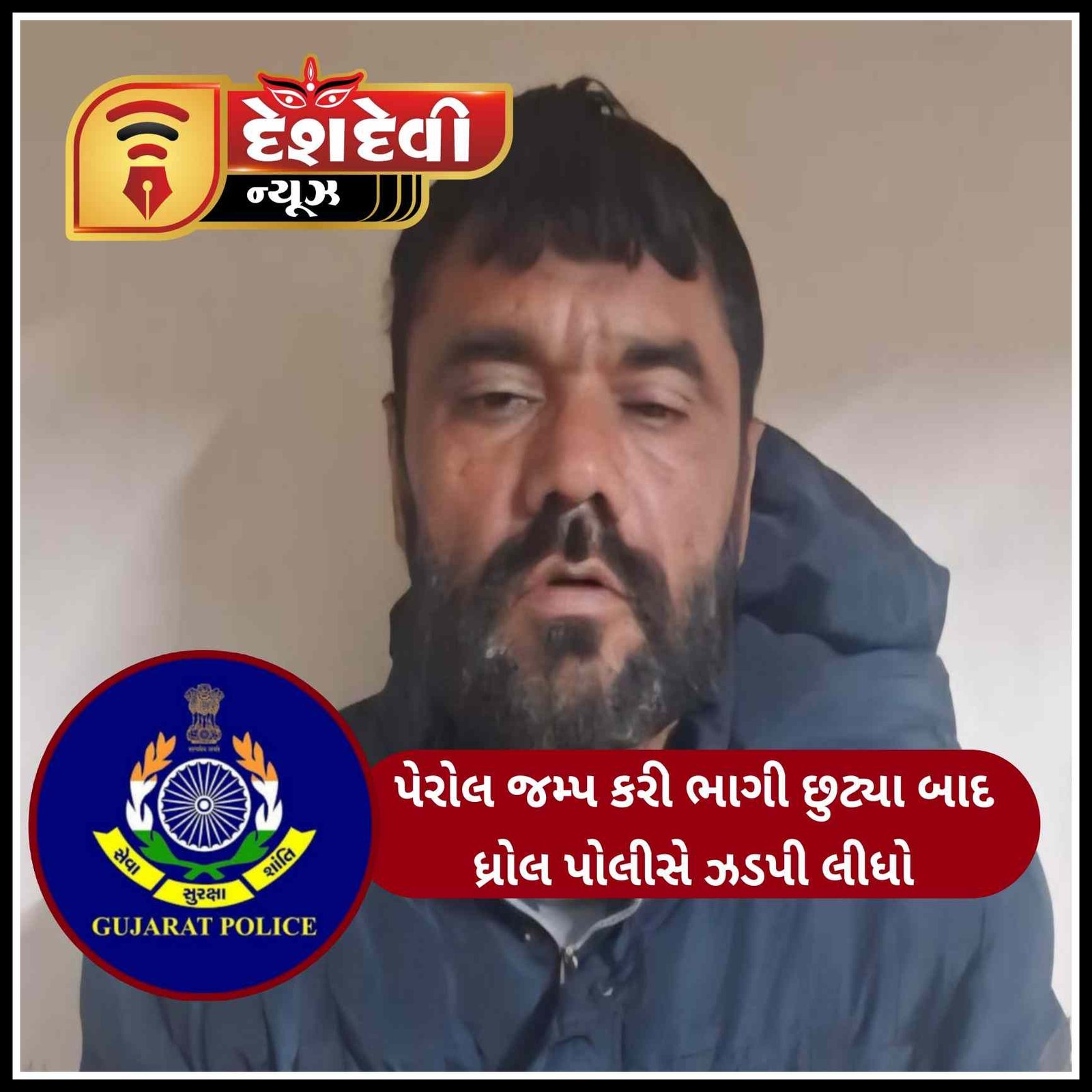 ખંભાળિયા ની એક હત્યાના કેસમાં ૨૦ વર્ષની સજા પામેલો જામનગરનો એક કેદી પેરોલ જમ્પ કરીને ભાગી છુટ્યા બાદ ધ્રોળ પંથકમાંથી ઝડપાયો